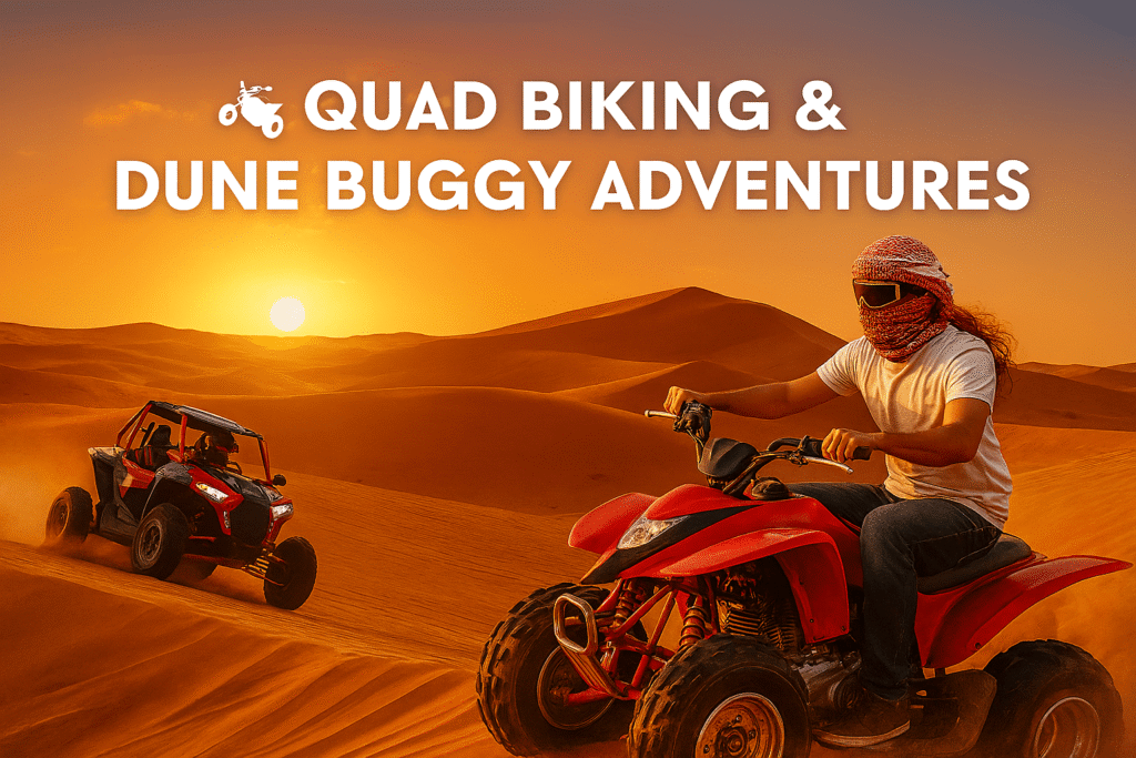 VIP packages include quad biking sessions where you control your own ride. For those who want more power, dune buggies are available—offering speed, safety, and the ability to tackle steeper dunes. It’s the perfect upgrade for adventure lovers.